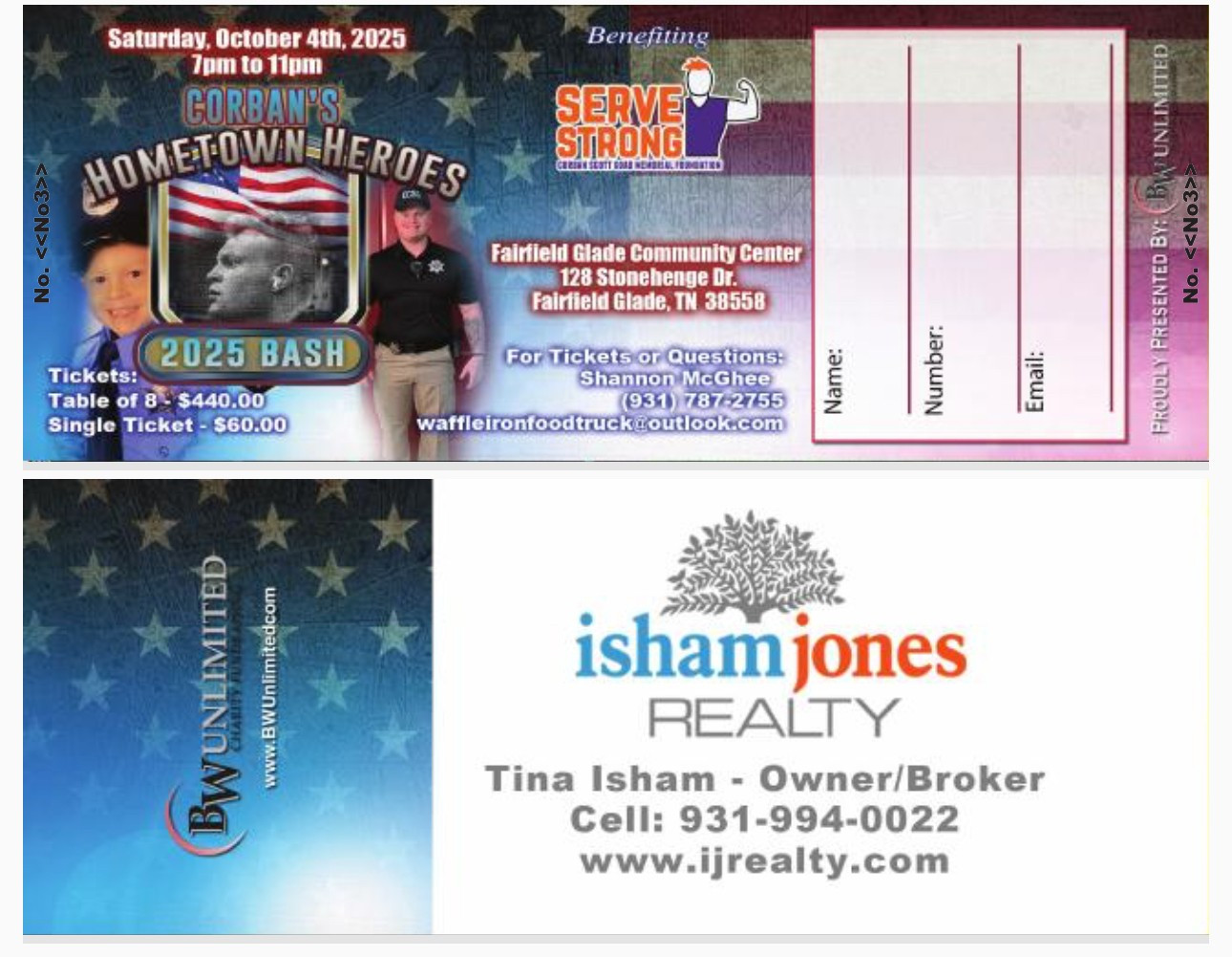 Note: This site is for convenient digital purchase. Your actual physical tickets will be mailed or hand-delivered and will look like the image below.